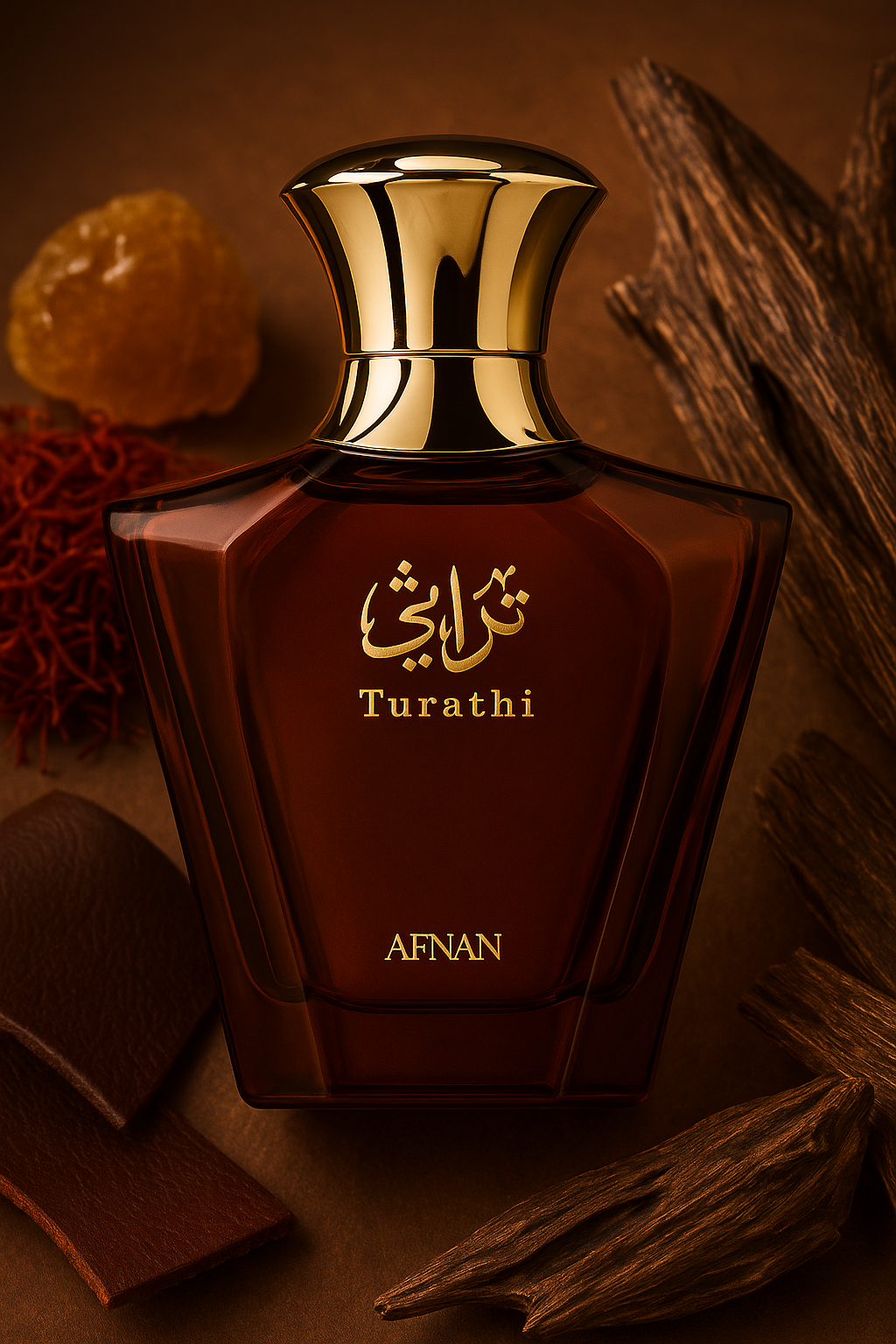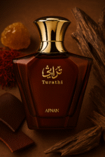 Afnan Turathi Brown Eau de Parfum— a rich oriental-woody fragrance that blends warm saffron, smoky leather, and deep oud with a hint of amber and vanilla. Bold, elegant, and long-lasting, it’s the perfect scent for confident men who appreciate timeless sophistication.