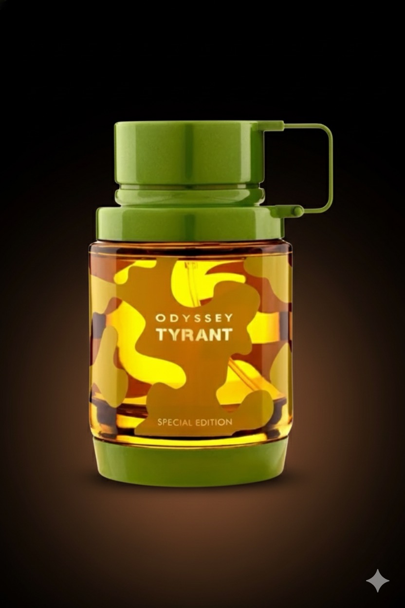 Armaf Odyssey Tyrant Special Edition Eau De Parfum – an Oriental Woody fragrance for men, launched in 2023. It opens with fresh Grapefruit and citrus notes, followed by Pepper, Lavender, Geranium, and Elemi, finishing with Ambroxan, Vetiver, Cedar, and warm woody notes.