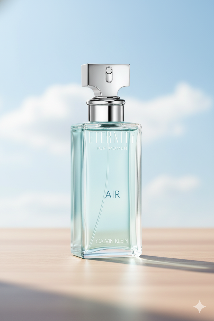 Calvin Klein Eternity Air for Women Eau De Parfum – a Floral Fruity fragrance launched in 2018. It opens with fresh ozonic notes, grapefruit, and black currant, followed by a soft heart of peony, pear, and lily-of-the-valley, and finishes with a clean base of musk, cedar, and ambergris.