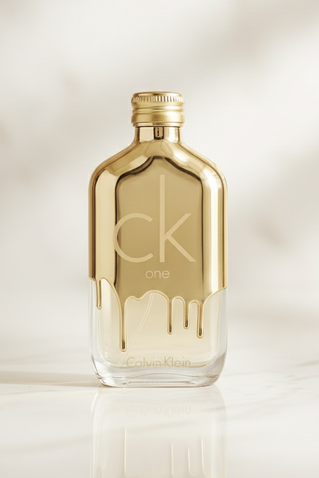 Calvin Klein CK One Gold Eau De Toilette – a Woody fragrance for men and women, launched in 2016. It opens with fig, bergamot, and sage, followed by a heart of neroli, jasmine, and violet, and settles into a warm base of guaiac wood, vetiver, and patchouli for a fresh, elegant, and long-lasting scent.