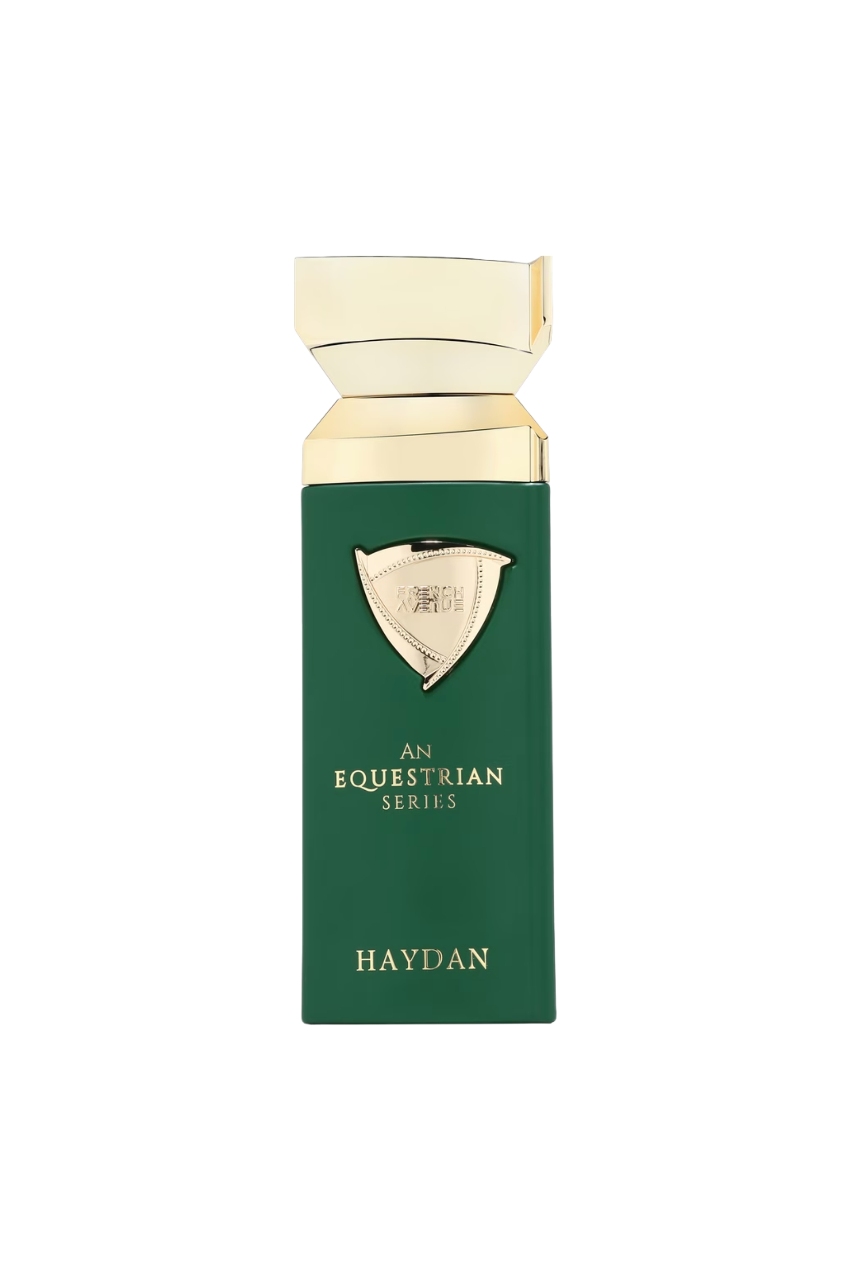 French Avenue An Equestrian Series Haydan Eau de Parfum – a sophisticated woody aromatic fragrance for men, launched in 2025. It opens with fresh lavender, clary sage, and bergamot, flows into a warm heart of saffron, praline, and cedar, and settles into a rich, masculine base of leather, patchouli, vetiver, oakmoss, and musk for a long-lasting, elegant finish.