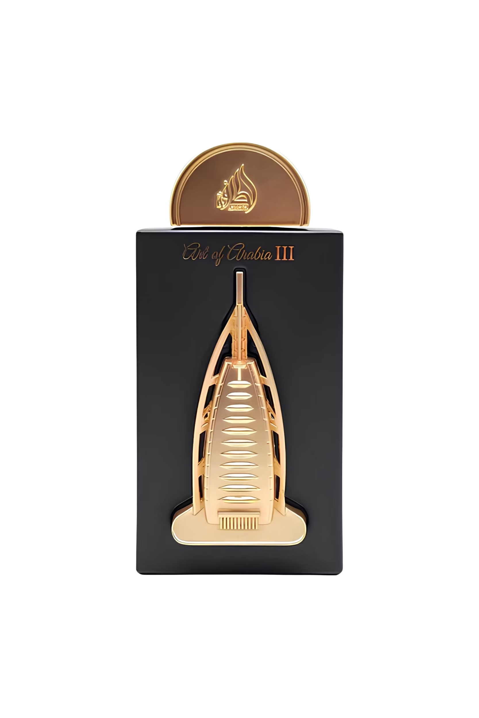 Lattafa Art of Arabia 3 Eau De Parfum – an Aromatic Spicy fragrance for men and women, launched in 2023. It opens with Olibanum, Davana, and Bergamot, moves into rich notes of Dates, Tobacco, Sandalwood, and Tuberose, and finishes with Myrrh, Vanilla, Tonka Bean, Labdanum, and Patchouli for a warm, deep, and elegant scent.
