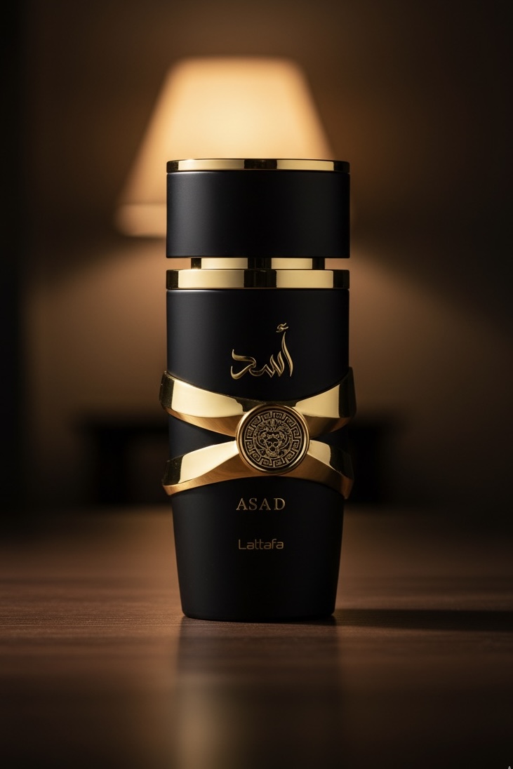 Lattafa Asad Eau De Parfum – an Oriental fragrance for men, launched in 2021. It opens with Black Pepper, Tobacco, and Pineapple, followed by Patchouli, Coffee, and Iris, and settles into a warm base of Vanilla, Amber, Dry Woods, Benzoin, and Labdanum.