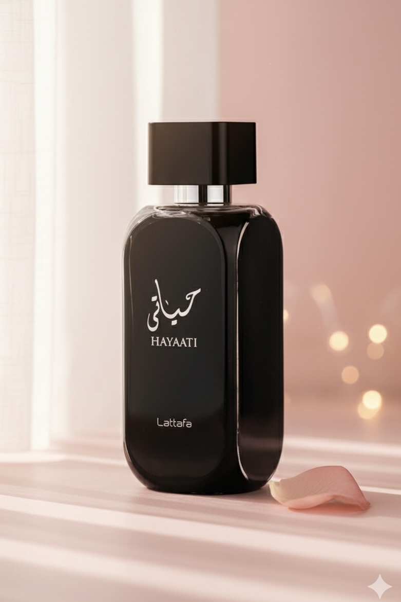 Lattafa Hayaati Eau De Parfum – a Woody Aromatic fragrance for women and men, launched in 2020. It opens with Apple and Bergamot, moves into Cinnamon and woody notes, and settles into a smooth Musk and Vanilla finish.