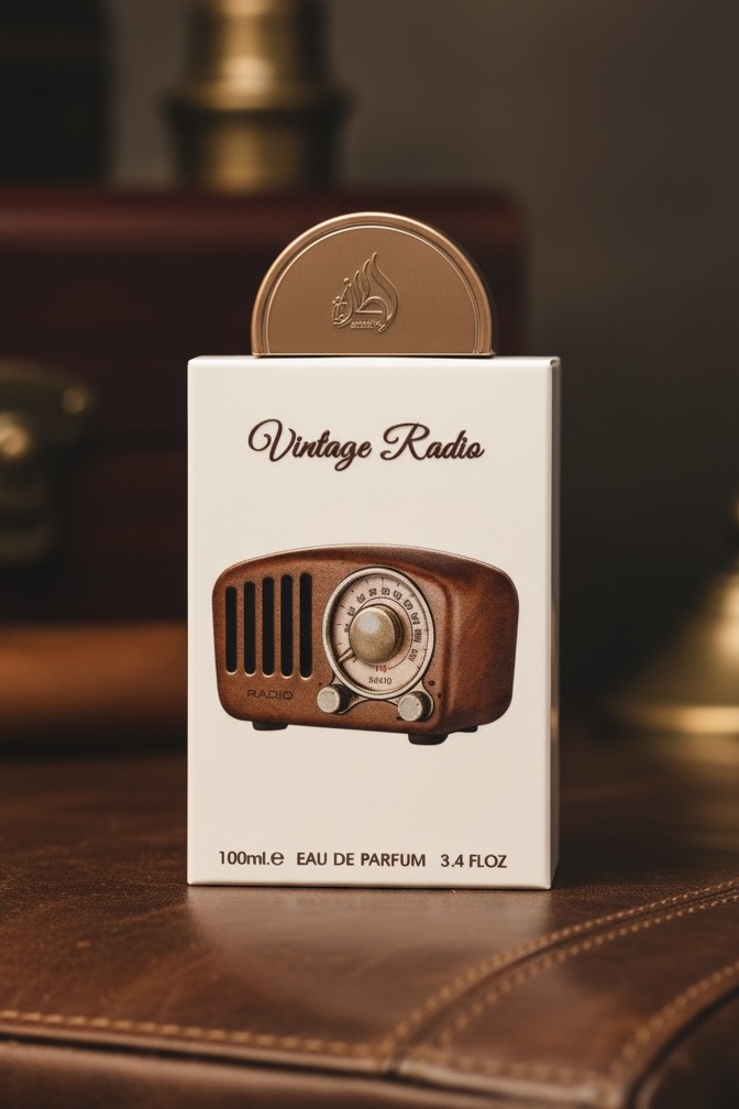 Lattafa Vintage Radio Eau De Parfum –  an Oriental Woody fragrance for women and men, launched in 2023. It opens with Lavender, Sage, and Bergamot, moves into Plum, Palo Santo, and Black Pepper, and settles into a smooth base of Sandalwood and Oud for a warm, refined finish.