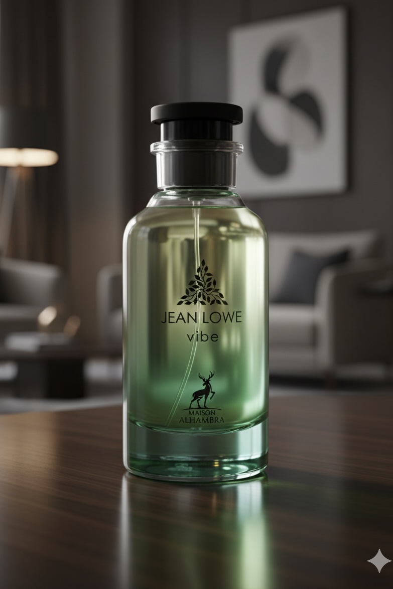 Maison Alhambra Jean Lowe Vibe Eau de Parfum – a Woody Aromatic fragrance for men and women. It opens with mint, citron, orange, lemon, black currant, and coriander, blends into a heart of apricot, basil, May rose, and carrot seeds, and rests on a warm base of fig, ambrette, and dates.