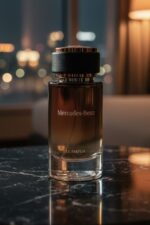 Mercedes-Benz Le Parfum – a sophisticated woody chypre fragrance for men. Launched in 2015, it opens with pink pepper and bergamot, reveals a heart of violet leaves, saffron, and galbanum, and settles on a rich base of oud, amber, vetiver, and patchouli.