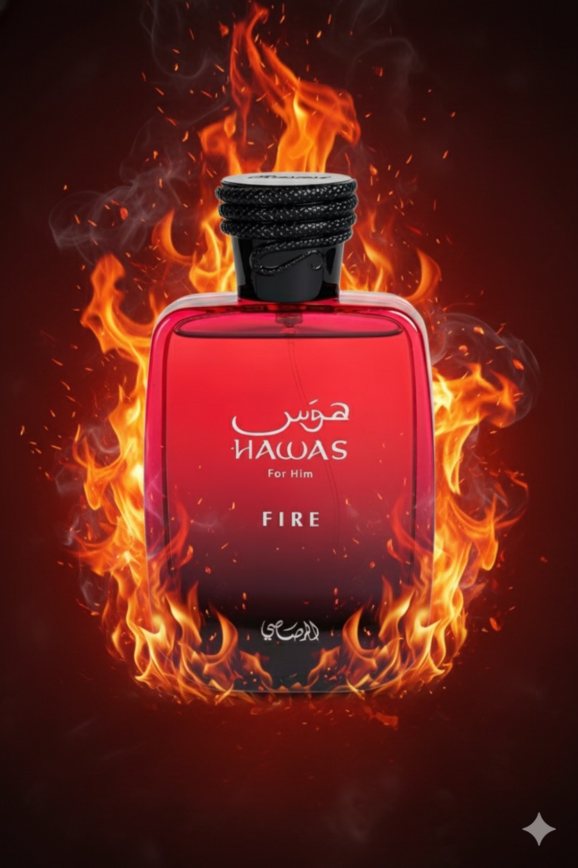 Rasasi Hawas Fire Eau De Parfum – A vibrant unisex blend of clary sage, Egyptian jasmine, and marine notes, resting on a warm base of amber, mineral notes, and ambergris. Fresh, modern, and effortlessly captivating — a fragrance that ignites the senses with energy, depth, and sophistication.