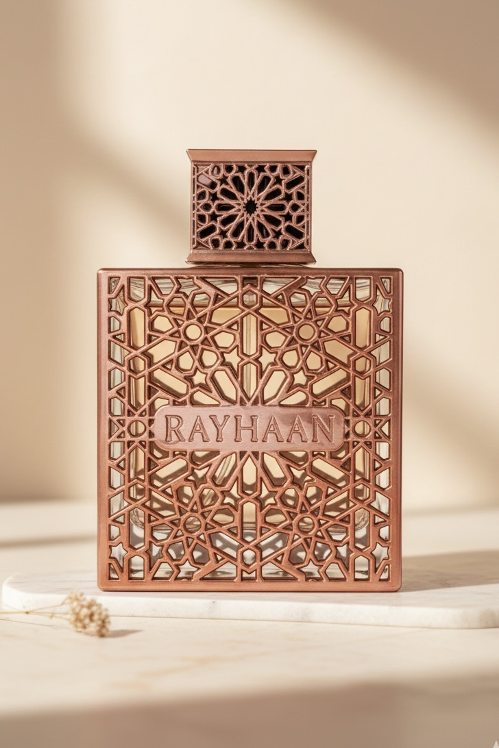 Rayhaan Divine Eau de Parfum – a captivating unisex fragrance blending freshness, elegance, and indulgence. It opens with litchi, bergamot, and ginger, followed by a floral heart of peony and rose with sweet vanilla, and settles into a rich base of chocolate accord and patchouli for a warm, irresistible finish.