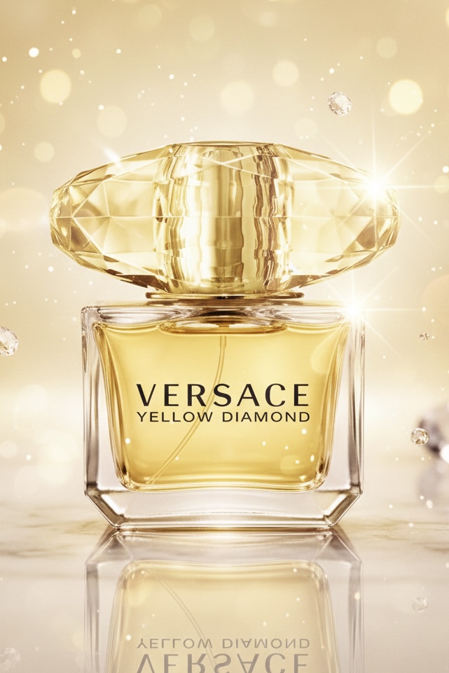 Versace Yellow Diamond Eau de Toilette – a Floral fragrance for women. Launched in 2011, it opens with Amalfi Lemon, Pear, Bergamot, and Neroli, blooms with Mimosa, Freesia, Water Lily, and African Orange Flower, and rests on a base of Musk, Guaiac Wood, and Amber.